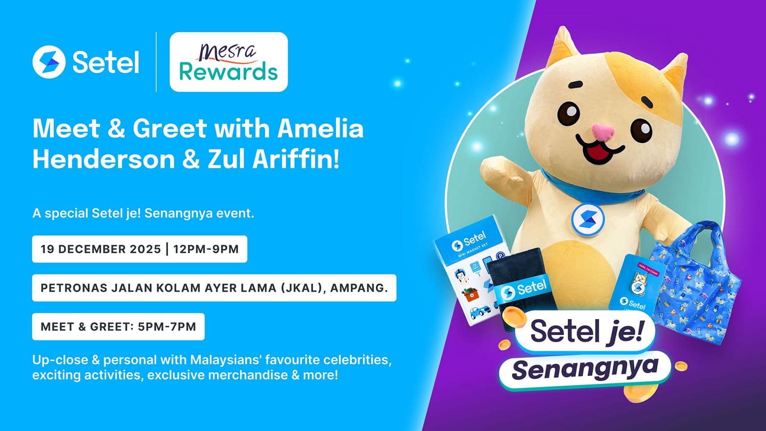 Setel is bringing its year-end cheer to Ampang with the Setel je! Senangnya Roadshow, happening this 19 December, Friday, from 12.00PM to 9.00PM, at PETRONAS Jalan Kolam Ayer Lama (JKAL). As part of the nationwide Setel je! Senangnya campaign, visitors can look forward to a full day of fun with on-ground activities, festive engagements and special rewards for new and existing users.